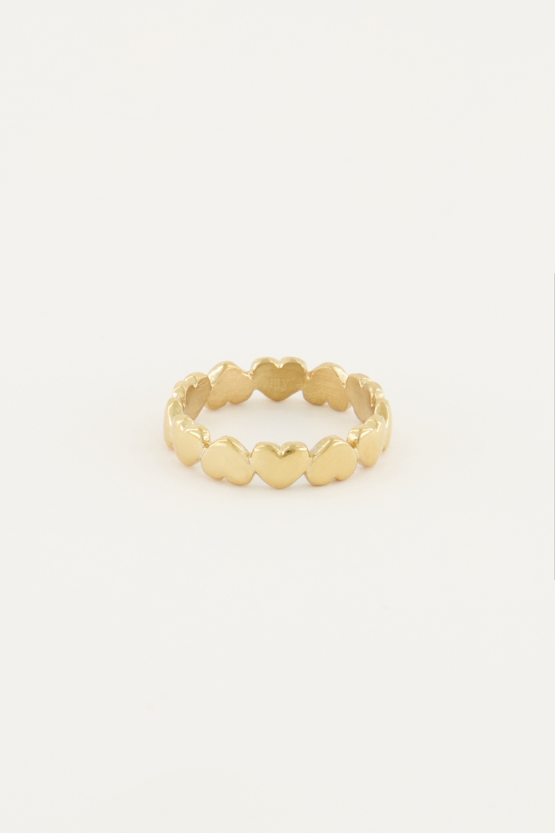 Love is in the air! Deze fijne ring met hartjes is perfect om te combineren met jouw favoriete ringen voor een complete ring stack. Ben jij net zo verliefd op deze ring als wij? Of ga je iemand anders blij maken met onze hartjes sieraden? Deze ring met hartjes is namelijk ook super leuk om te geven als cadeau, bijvoorbeeld als Valentijnscadeau! Happy giving!